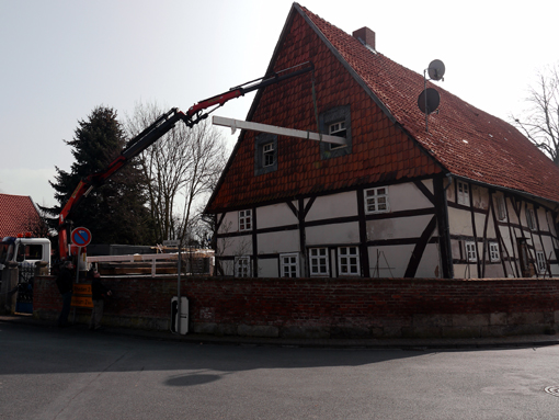 Vorbereitungen am Dachstuhl